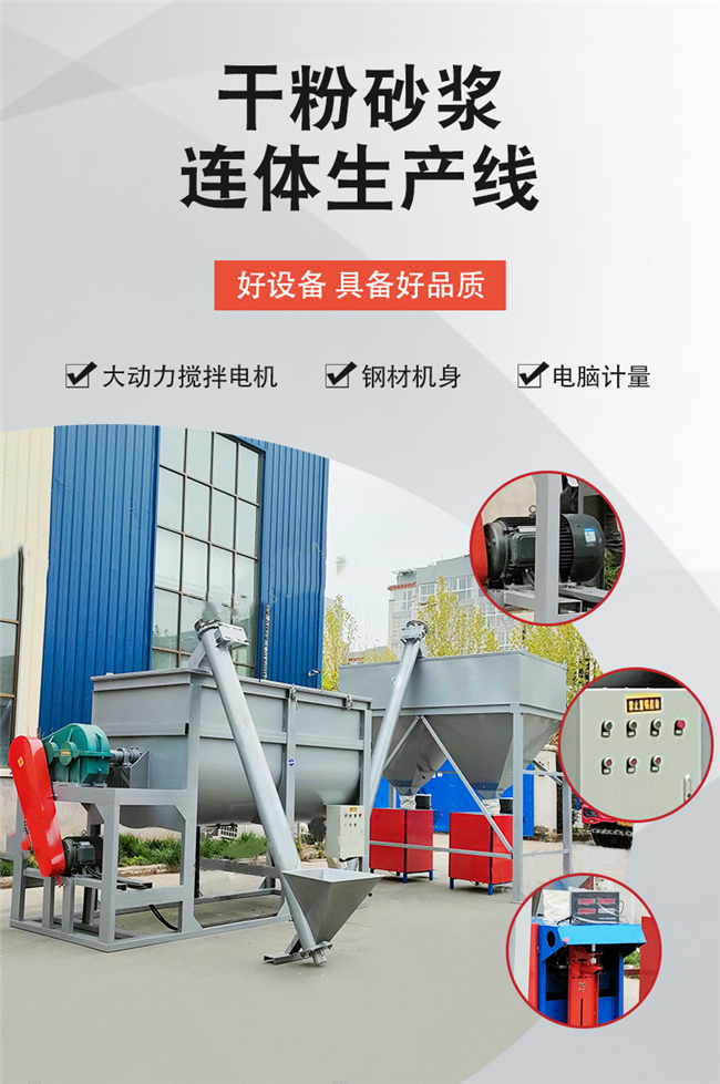 4、操作簡單:該設備無需基礎即可安裝,具有占地面積小、操作簡單、能耗低、產量高等優(yōu)點。可用于生產?;⒅楸厣皾{、聚苯顆粒保溫砂漿和各種外墻特種保溫砂漿。